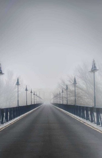Hoy caminas por el Puente de Hierro hacia la niebla o desde la niebla, tanto monta, y recuerdas las palabras de Juan Marsé: Hay dos maneras de construir una novela, ir añadiendo todo lo que en ella no sobre o ir quitando todo lo que en ella no sea indispensable. La niebla hace lo propio con el paisaje: añade los árboles, el alquitrán, las farolas apagadas o bien quita todo lo que no es sobrante, y así sigues tu camino. Sabes que al otro lado hay una bodega fundada en 1890. Respiras. Tu aliento es también niebla. Tú, polvo enamorado.