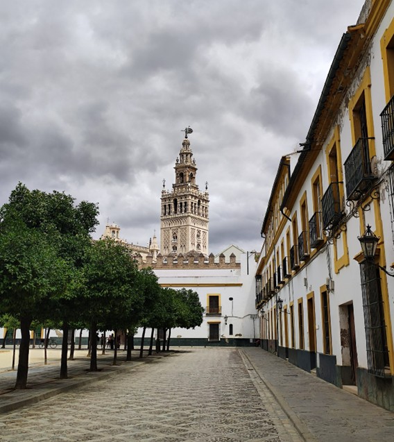 La plaza desierta, el cielo gris, el viento frío. ¿Regresas al tiempo de la pandemia? No, pero nada te invita a pensar que hoy es doce de julio, mediodía, que estás en Sevilla. La torre, al fondo, es la Giralda. Una amiga te lleva y trae por las calles y plazas que recorres al galope. Empatizas con los equinos, velada la mirada por las anteojeras. Igual tú, viéndolo todo sin ver nada, echando fotos sobre la marcha, como si viajaras en un tren de alta velocidad. ¿Qué tiene Sevilla que enamora? Palpas tu cuerpo buscando la marca inequívoca del flechazo.