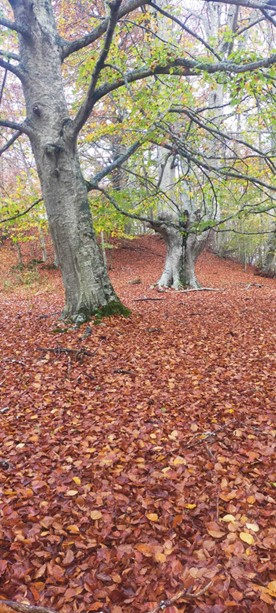Escupe agua sobre las fronteras: Álava, Navarra, La Rioja. ¿Qué saben los árboles de estos lindes administrativos? Ves los mojones de piedra en los bosques. Beben los robles, las hayas, los acebos, los castaños, en su ofrenda de castañas, las yeguas en los caminos. Recorres la cumbre. Hasta el cielo te conducen los pies, y también el bizcocho, el membrillo, el orujo de maguillas. Pronto caerá la tarde. Verás cómo rebotan los años rejuvenecidos en el frontón. Ahora en el vaivén del columpio y el suave trote del caballito. Sientes la fluidez en el tobogán, la inercia de la alegría.