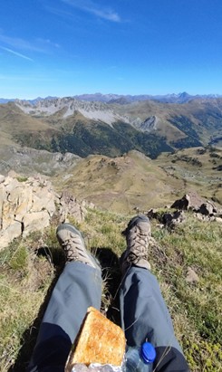 Nada que ver con la sensualidad que rezuman los bikini bridge, pero después de la ascensión, bien ventilado tras atravesar el collado, habiendo dejado de lado el vivac y pisando lascas de piedra, lejos ya del cascabeleo de los cencerros y cada vez más cerca de un cielo despejado y elástico, ya en la cumbre, es menester sacar el móvil y ejecutar un sándwich leg. Al frente los picos graníticos recortándose en el horizonte, buscando (como a Willy) el ibón de Acherito, reflejo de agua en lontananza que no atiende a un espejismo, a pesar del esfuerzo y la fatiga.